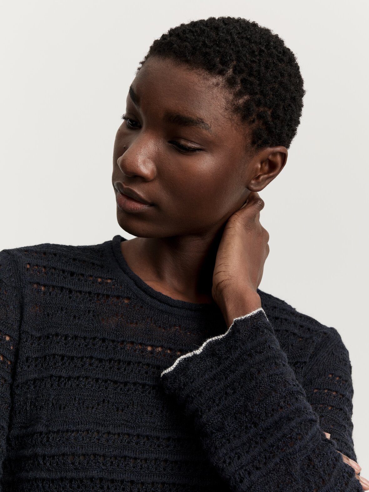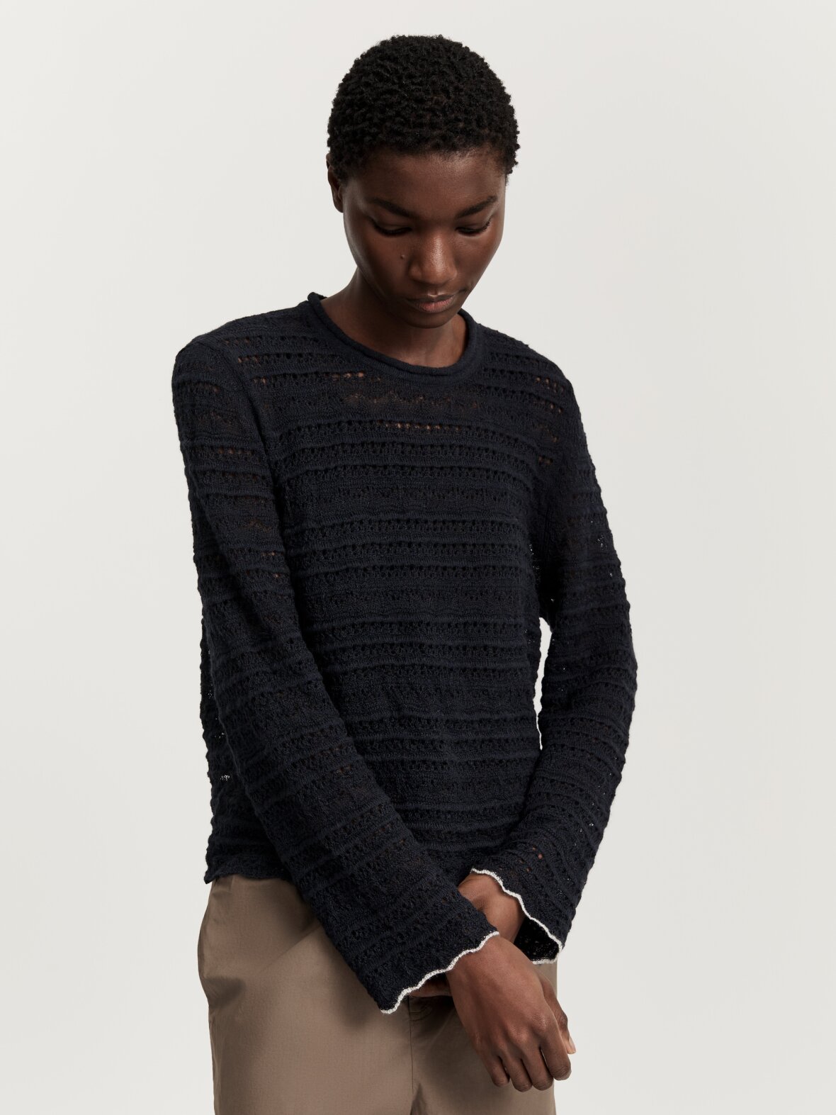 - Strikket i et fint transparent blondemønster